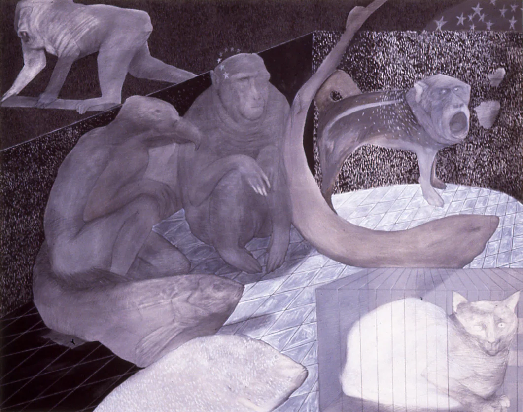 Dog and Fish, 1994 | Acrylic + Ink | 50" x 40"