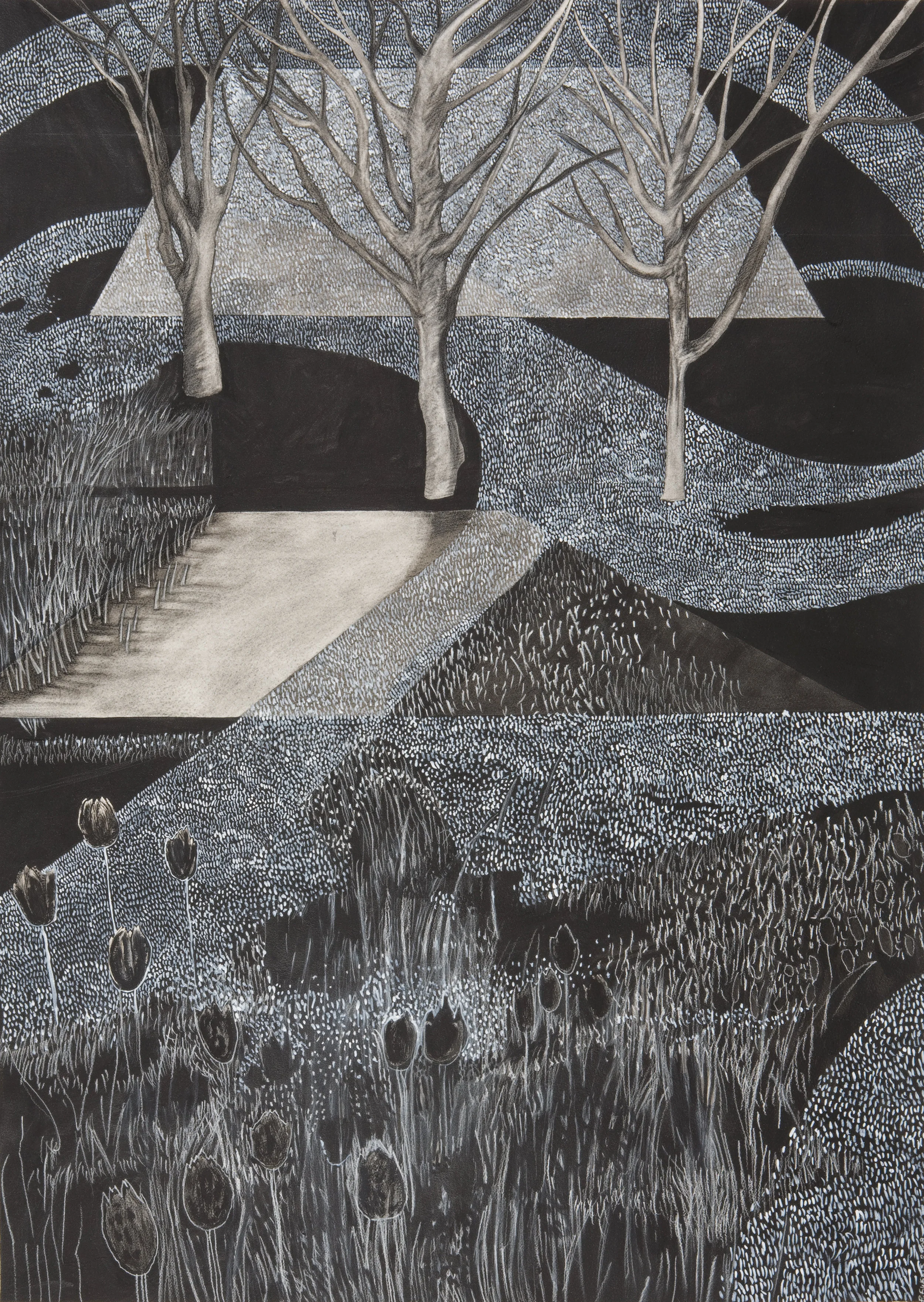 Detail: Trails | Acrylic + Charcoal | 30 x 22"
